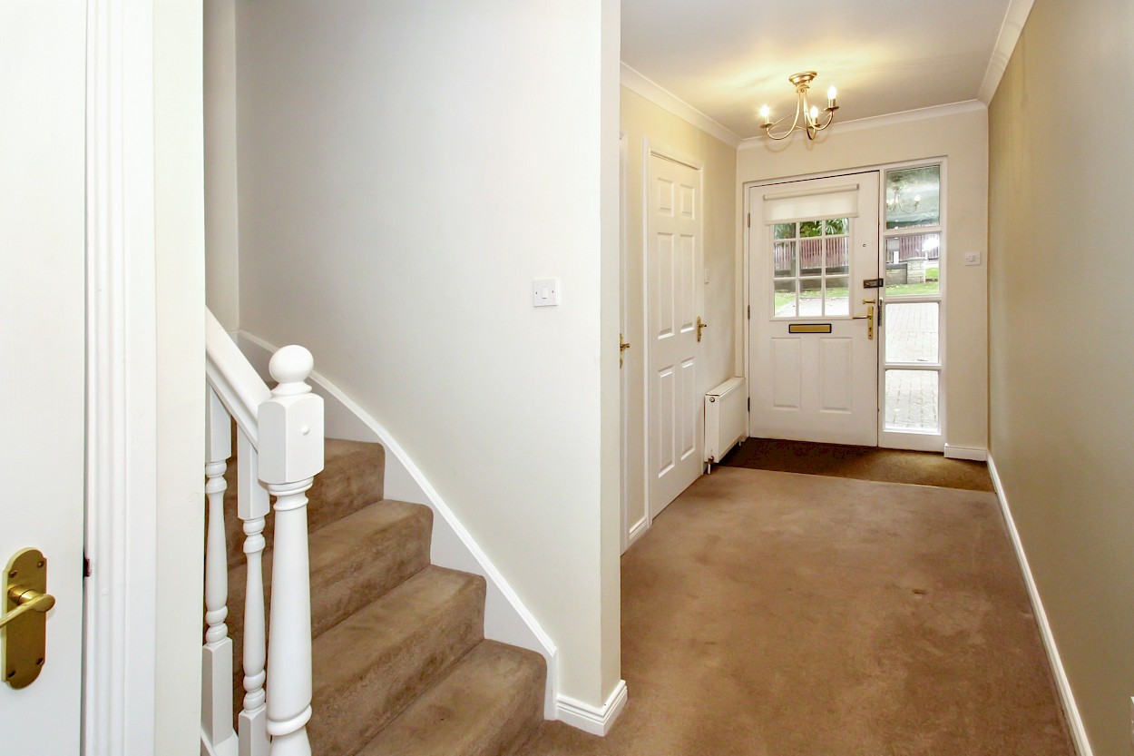 The neat garden grounds are mainly laid to lawn with a small patio area, drying facilities, maximum privacy and a west facing aspect to rear. An internal garage and monobloc driveway to front provides ample off-street parking for several vehicles. Visitor parking is also available.