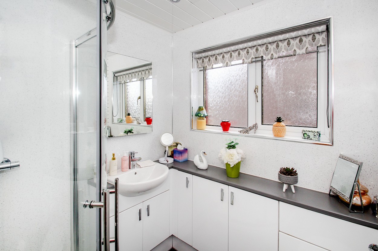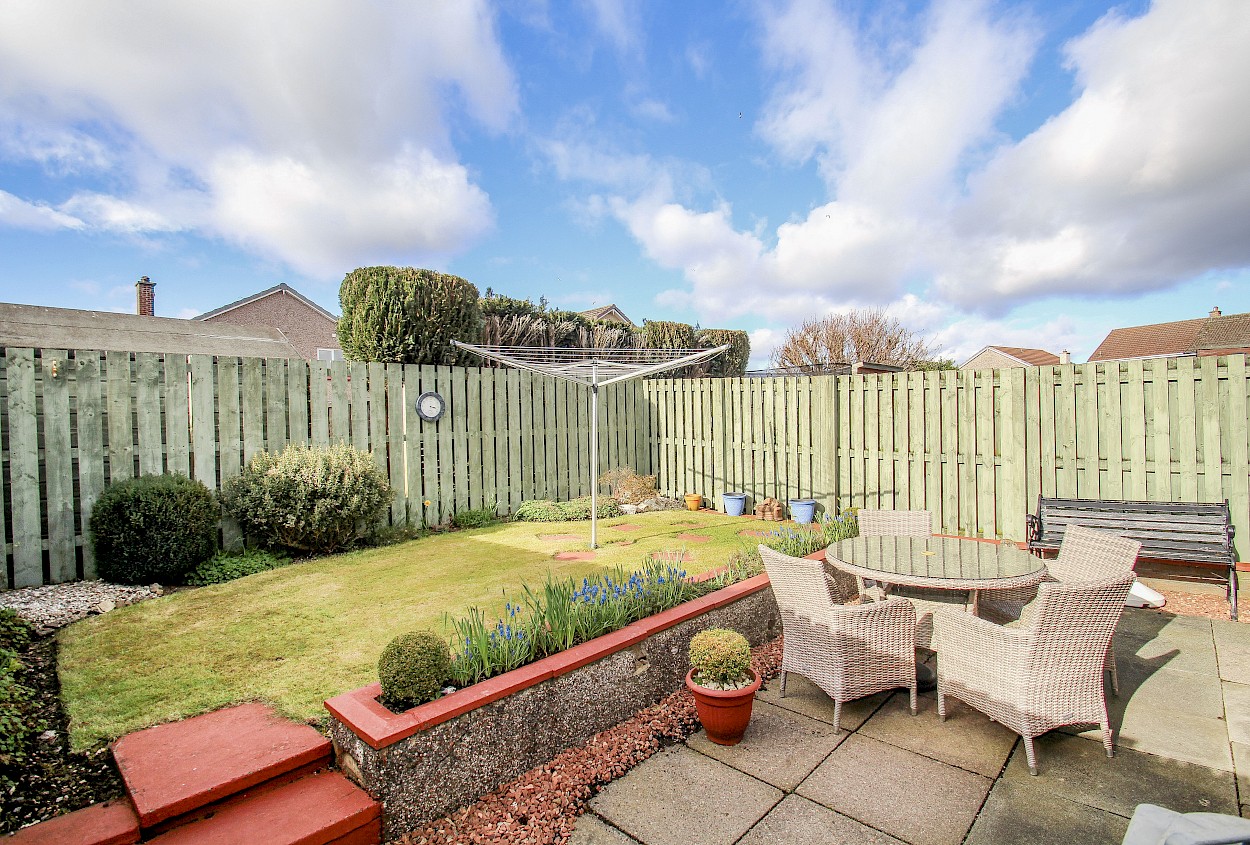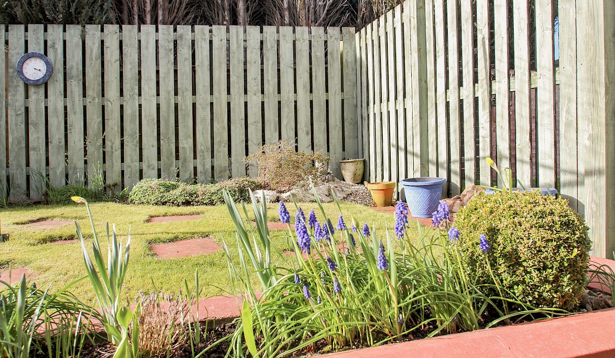 The generous garden grounds to front and rear boast a variety of flower beds, shrubs and a neat lawn. Drying facilities are provided. A driveway and garage to side, offer ample off street parking. The garage has power and light installed.