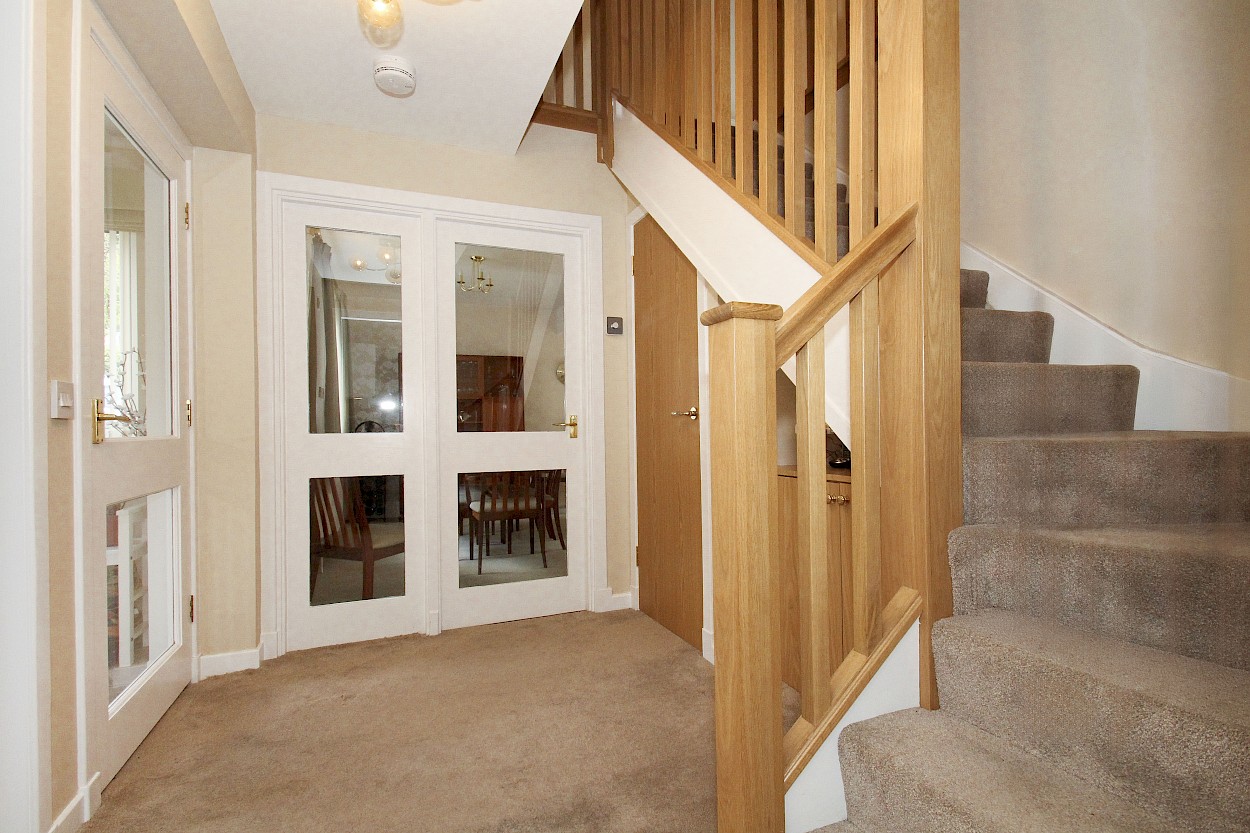 Gas central heating and double glazed windows are installed and the property boasts many fine features throughout, such as French Doors in both the lounge and sitting room, electric fire in lounge, oak balustrades, quality finishing, a flexible layout, useful key safe and peaceful outlooks to rear. There is external lighting to both front and rear of the property. EPC rating: C. Council tax band: F.