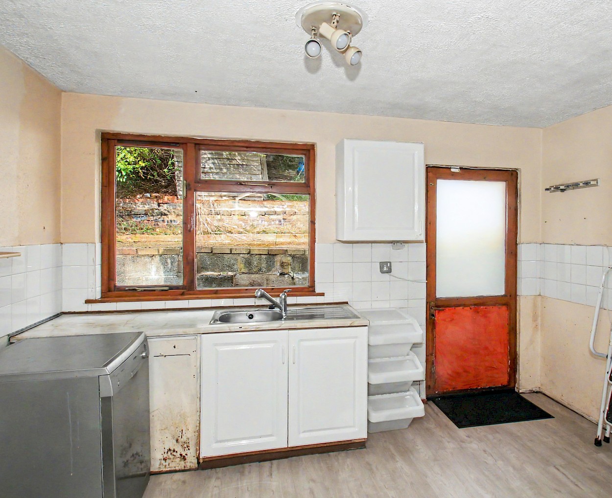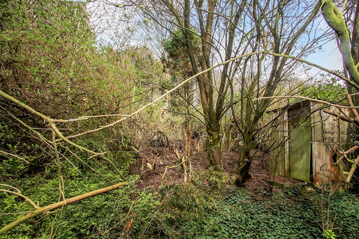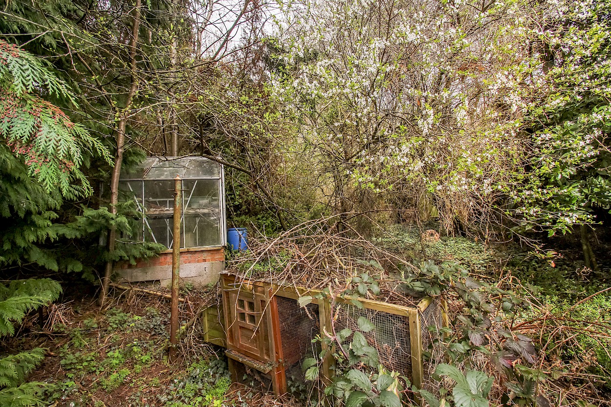The extensive garden grounds stretch to approximately ¾ of an acre, with generous decked area and walk on balcony to front and elevated plot to rear, offering fabulous southerly views (although views are restricted due to the grounds being fairly overgrown at present). There is a large driveway and garage to front offering ample off street parking for several vehicles.