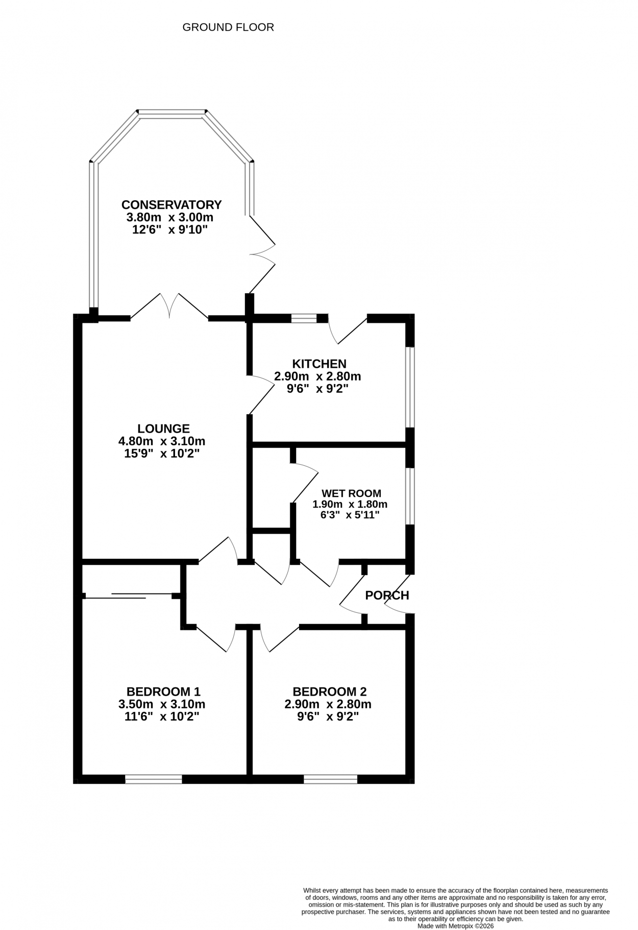 Accommodation comprises: entrance hallway, lounge, conservatory, kitchen, two double bedrooms and wet room.
