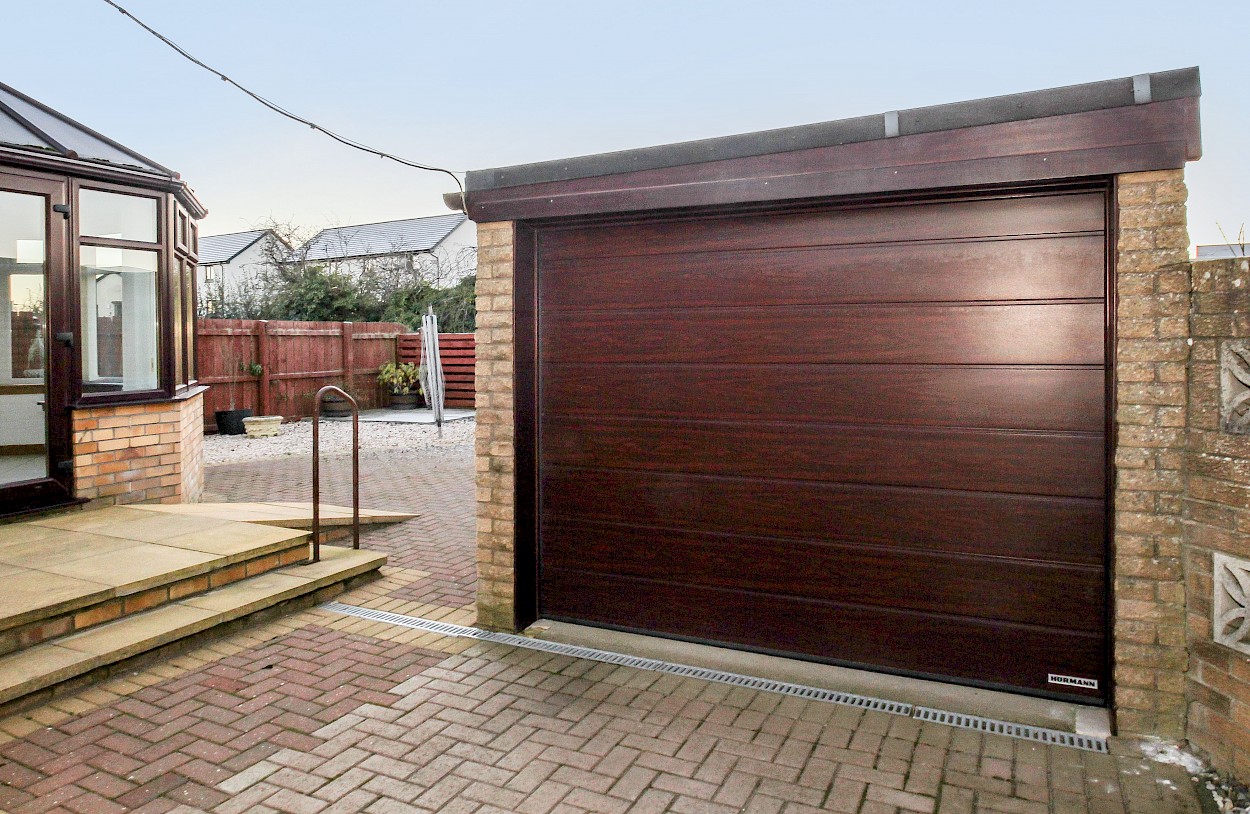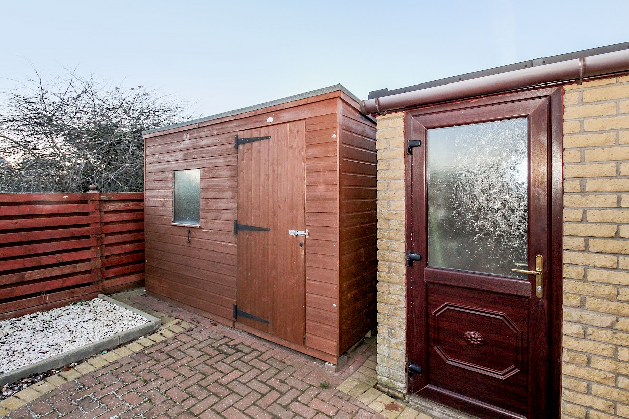 The property boasts neat gardens to front and rear which are mainly paved for ease of maintenance. There are drying facilities provided, a large timber garden shed and west facing aspect to rear. The detached garage and driveway offer ample parking for several vehicles and the garage has a remote controlled door.