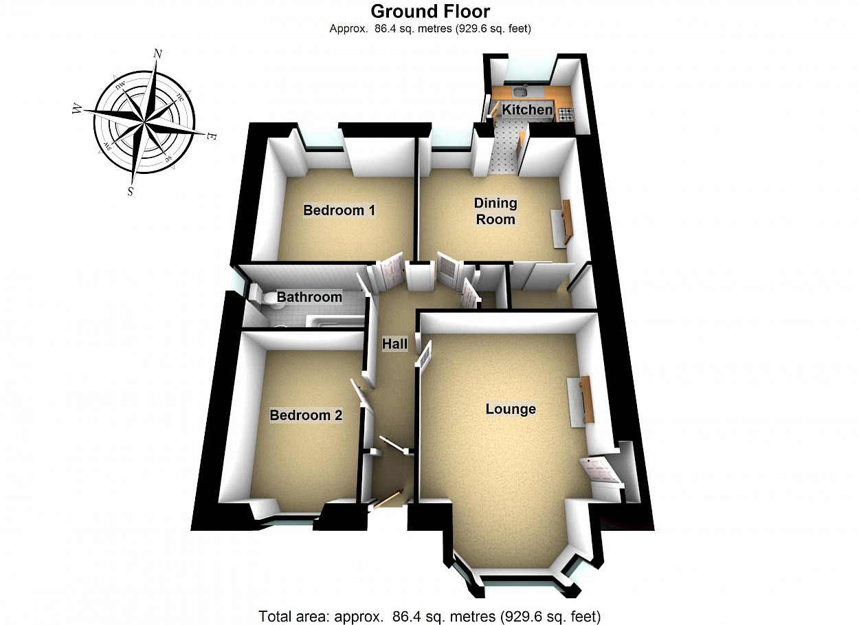 There is a flexible internal layout which includes an entrance vestibule, lengthy reception hallway, lounge (could also be utilised as a large double bedroom), sitting room/with dining area, two good sized bedrooms, modern kitchen (with rear door to private garden) and bathroom.