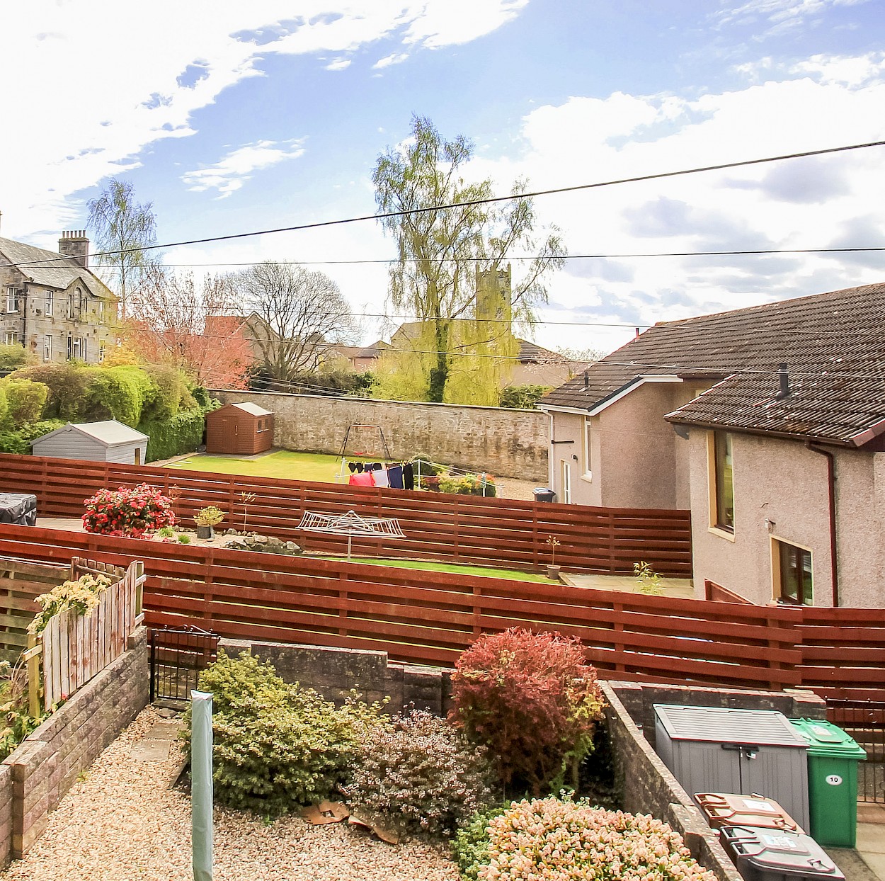 The garden grounds are mainly paved for ease of maintenance, with numerous mature shrubs and generous chipped areas. There is a private garage, which is positioned only a short walk from the property.