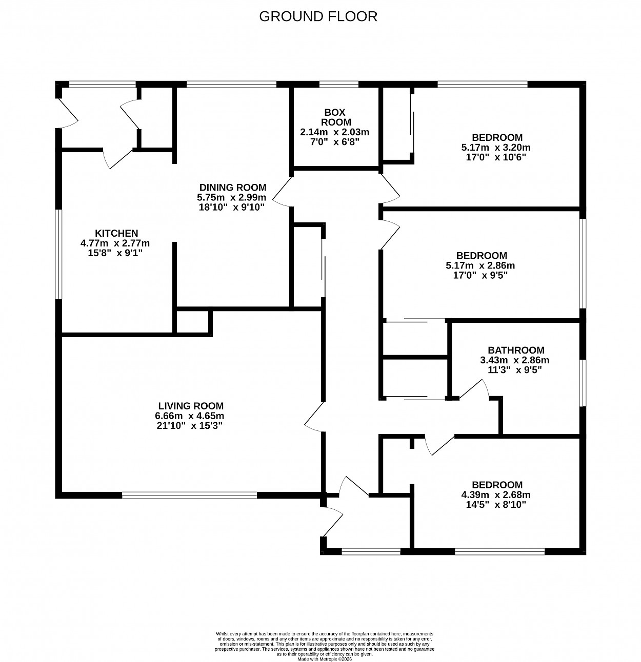 Accommodation comprises: entrance vestibule, reception hallway, lounge, dining room, kitchen, three bedrooms, box room and bathroom.