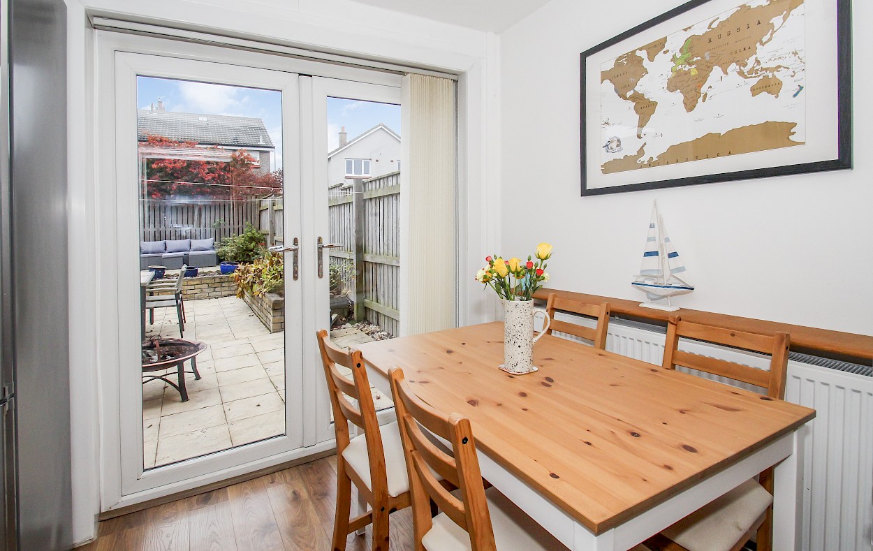 Accommodation comprises, large entrance porch, reception hallway, lounge (with living flame fire), dining kitchen (feature French Doors), bathroom, upper landing and three bedrooms.